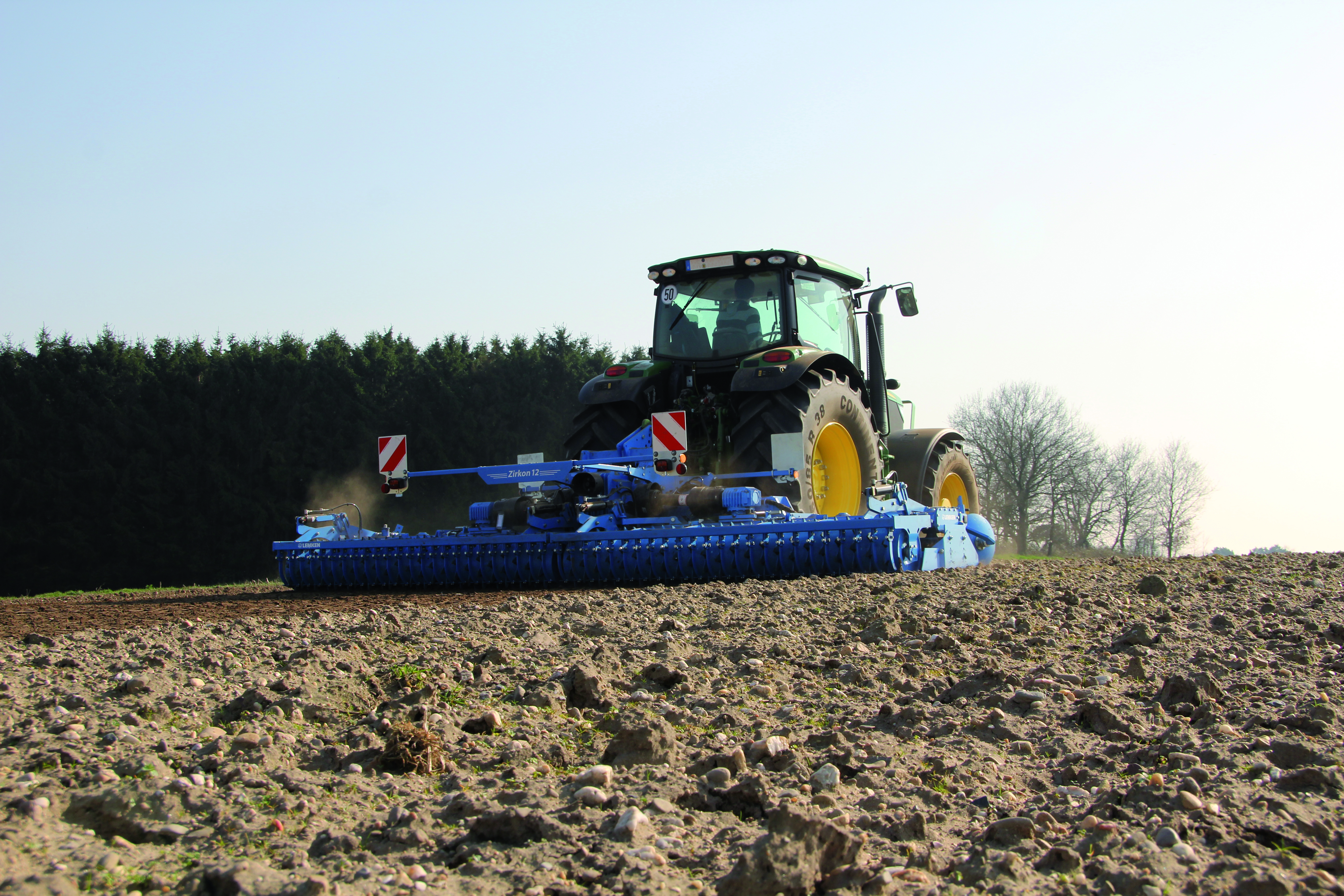 Ротаційна борона Zirkon 12 розроблена для тривалих великих навантажень при обробці ґрунту як при традиційній, так і при консервувальній технології. Завдяки інтенсивному подрібненню та перемішуванню активні робочі органи Zirkon 12 практично в будь-яких умовах здатні підготувати посівний горизонт на глибину 15 см. Інтенсивність обробітку одночасно регулюється швидкістю руху, обертами ВВП та роторів борони